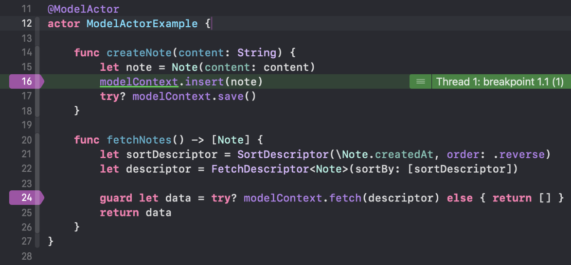 또한, @ModelActor를 붙이면 actor 내에서 명시적으로 modelContext를 초기화 시켜주지 않아도 된다.
